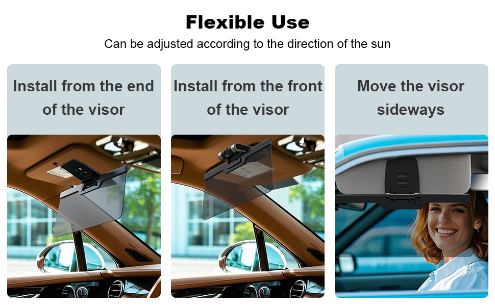 【Strong compatibility】This car visor extender is compatible with most car brands. For example: Toyota, Ford, Chevrolet, Honda, Mercedes-Benz, BMW, Tesla, Lexus, etc., and can also be used on side windows and front passengers. Note: It is not compatible with heavy trucks.